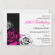 Une invitation moderne et élégante avec un motif de rose en noir, blanc et rose. Convient à d'autres occasions, il suffit de personnaliser le texte. Également disponibles, des enveloppes assorties.