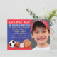 Célébrez l'anniversaire de votre petite fille avec cette invitation à thème sportif étoilée. Ajoutez la photo de votre enfant et les informations sur la fête !