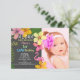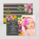 Invitation d'anniversaire colorée, lumineuse, adorable, tropicale et estivale à thème Hawaïen Luau avec photo personnalisée et fleurs aquarelles.