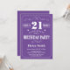 Invitation 21e anniversaire Typographie violette et blanche. Arrière - plan violet et blanc. Anniversaire adulte. Hommes ou femmes, anniversaire. Enfants Garçon ou fille Ado Anniversaire adolescente Invitation . 13e 15e 16e 18e 20e 21e 30e 40e 50e 60e 70e 80e 90e 100e. N'Importe Quel Âge.