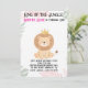 Faites du premier anniversaire de votre enfant un événement majestueux avec Wild One Crown Invitation! Ce design minimaliste dessiné à la main met en valeur un petit lion portant une couronne dorée, entouré de feuilles tropicaux d'aquarelle douce aux tons rose vif et vert sauge. L'arrière - plan blanc propre offre beaucoup d'espace pour des détails personnalisés de la fête directement sur Zazzle. Parfait pour une fête royale de premier anniversaire !