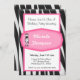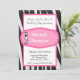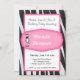 Cute Kids Zebra invitation avec un arrière - plan zèbre noir et blanc avec une plaque d'identification rose. Idéal pour les fêtes d'anniversaire à thème Zèbre. Customisez avec les détails de votre fête.