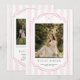 Célébrez votre étape importante avec cette invitation moderne rayée pour une fête de remise de diplôme, conçue avec un espace pour mettre en valeur vos propres photos spéciales. Elle présente un fond doux à rayures à l'aquarelle, un cadre fantaisiste et un nœud délicat, le tout associé à une police classique et intemporelle pour un look élégant et joyeux. Faites une première impression mémorable et définissez le ton de votre célébration avec notre invitation de fête de remise de diplôme photo rayée. Commandez dès aujourd'hui et laissez le compte à rebours vers votre inoubliable fête de remise de diplôme commencer ! Si vous aimez ce design mais ne le voyez pas disponible pour le produit que vous recherchez, n'hésitez pas à nous contacter à tout moment - je serais ravi de vous aider !
