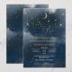 Invitation pour Baby Shower Dans la Lune Bébé, Invitation avec Lune et Étoiles avec Nuages de couleur Navy et Or pour Baby Shower