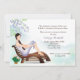 Un beau, féminin, invitation de partie de retraite pour toute femme. Elle comporte une scène tranquille de patio avec des fleurs, une chaise longue et une femme se reposant là-dessus. (VM)