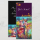 Invitation d'art raffiné, colorée, élégante et vibrante. Danseuses romantiques de carnaval : figures de danse artistiques, fantaisistes et expressives, une belle femme blonde en costume à plumes scintillantes danse avec un jeune Arlequin avec des ornements jaunes sur le verso de la carte. Peinture à l'aquarelle dans des couleurs vives rose, fuchsia, vert, rouge, bleu, jaune, avec des paillettes d'or inspirées de la Comédie de l'Art (Commedia dell'arte) et du Carnaval de Venise. C'est également un beau design pour les faire-part de mariage, les programmes, les cartes "save the date", les anniversaires de mariage, les réunions, les fiançailles romantiques, les douches de mariée, les occasions spéciales, les fêtes de fin d'année, le bal masqué de Mardi Gras, les