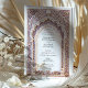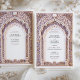 Cette faire-part de mariage exquise dispose d'une magnifique arche en figuier doré, inspirée de l'architecture baroque classique et de palais indien. Les détails floral et défilé, minutieusement sculptés, créent une ambiance royale et sophistiquée, idéale pour les mariages élégants, traditionnels et de destination. La palette luxueuse de couleurs or et ivoire renforce l'esthétique intemporelle, tandis que la typographie raffinée assure un mélange harmonieux d'art et d'élégance. Idéal pour les couples à la recherche d'une faire-part de mariage opulente et mémorable qui respire la grandeur et le raffinement.