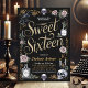 Invitation vos invités à une fête de Sweet sixteen d'une beauté éternelle avec cette invitation d'inspiration gothique. Les accents floraux sombres, la typographie vintage et les éléments mystérieux comme les crânes et les corbeaux donnent une ambiance parfaite à une fête sur le thème de Dark Academia. Customisez facilement cette invitation avec les détails de votre événement pour créer un souvenir unique et mémorable.