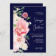 Invitation Dark Moody Navy bleu bleu bleu rose floral Script