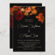 Colorful painted flowers and bride and groom names in an elegant classic calligraphic script on a black background wedding invitation.