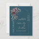 This save the date pairs moody elegance with modern symmetry. A deep teal background sets a romantic tone, while the upper left corner blooms with florals in dusty purple, soft lavender, and muted sage and teal—lush and painterly against the dark canvas.