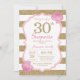 Pink and Gold Surprise 30th Birthday Invitation. Parties scintillant rose et or. Les rayures roses et blanches. Fleur Florale Rose. Anniversaire adulte. Fête d'anniversaire des femmes. Pour plus de personnalisation, cliquez sur le bouton "Customiser" et utilisez notre outil de conception pour modifier ce modèle.