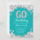 Invitation du 60e anniversaire. Turquoise et Silver Rhinestone Diamond Turquoise Turquoise Aqua Arrière - plan. Élégant invitation de Bassorh Anniversaire. Anniversaire adulte. Femmes Anniversaire. Hommes Anniversaire. Pour plus de personnalisation, cliquez sur le bouton "Customiser" et utilisez notre outil de conception pour modifier ce modèle.