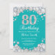 Invitation du 80e anniversaire. Turquoise et Silver Rhinestone Diamond Turquoise Turquoise Aqua Arrière - plan. Élégant invitation de Bassorh Anniversaire. Anniversaire adulte. Femmes Anniversaire. Hommes Anniversaire. Pour plus de personnalisation, cliquez sur le bouton "Customiser" et utilisez notre outil de conception pour modifier ce modèle.