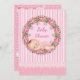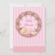 Invitation de Baby shower à rayures roses avec bébé dormant dans la couronne florale