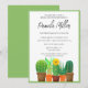 Personnalisez ce modèle d'invitation avec vos informations de baby shower. Cette invitation présente un design tendance de cactus en pot à l'aquarelle.
