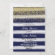 L'invitation de baby shower avec la conception de parties scintillantes d'or et le bleu marine barre l'arrière - plan d'aquarelle.