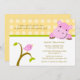 Cet invitation de partie de baby shower 5x7 a un oiseau rose mignon sur une branche et un hippopotame rose jetant un coup d'oeil plus d'et souriant. Il y a pois jaune à l'arrière-plan. Vous pouvez facilement customiser ceci avec votre information de partie. Ceci est fait pour une partie de bébé. Studio de cacao
