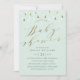 Conception moderne et élégante en bon état d'invitation de baby shower comportant des baisses et la calligraphie de pluie de feuille d'or de faux.