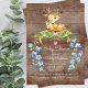 Joli baby shower en bois aquarelle avec un adorable cerf de maman avec son bébé avec des fleurs feuilles et bleues sur un arrière - plan rustique en bois marron. Parfait pour un baby shower pour garçons