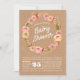 Invitations de carte plat design à fleurs rustiques haut de gamme populaires et tendance mariage. Rustique avec une sensation vintage été/printemps. De magnifiques fleurs d'aquarelle rose et orange (roses) forment une belle forme féminine de couronne circulaire. Baby shower de typographie cursive/script dans la jolie couronne florale. Un Modèle Pip Pip Hooray Design. Remplissez facilement le modèle avec vos propres détails ici et maintenant pour avoir un lot d'invitations à prix abordable et imprimé professionnellement livré à votre porte! Chaque invitation est livré avec une enveloppe de taille correspondant gratuite incluse dans le coût abordable.