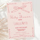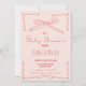 Une invitation baby shower pêche et arc rouille dessinée à la main moderne suivant la dernière tendance en baby shower stationnaire.