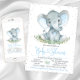 Baby shower d'éléphant garçon avec un petit éléphant mignon et la verdure sur un joli arrière - plan parties scintillant argent. Cette invitation au baby shower d'éléphants est facilement customisée pour votre événement. Vous pouvez supprimer l'arrière - plan d'parties scintillant arrière et ajouter la couleur de votre choix. Impossible de modifier le texte du baby shower.
