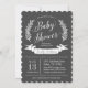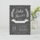 Chic invitation au baby shower rustique avec une typographie élégante dans une couronne botanique blanche. Design a un arrière - plan de tableau de bord imprimé faux. Cliquez sur Customiser pour modifier les polices de texte et les couleurs afin de créer une conception unique d'un type particulier.