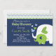 Invitation adorable de baby shower avec un éléphant de maman et son veau dans le bleu marine et le vert.