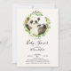 Baby shower de panda aquarelle mignon avec un adorable panda bébé dormant encadré d'une magnifique couronne de feuilles vertes. Parfait pour un baby shower pour filles, un baby shower pour garçons ou un baby shower neutre.