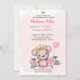 Fêtez l'arrivée prochaine de votre doux lot de joie. Ce design présente un ours mignon portant une couronne de tiare dorée, assis sur des fleurs roses et tenant un ballon de coeur rose. Une invitation baby shower pour les femmes qui aiment les ours et une princesse. Utilisez le bouton Personnaliser pour ajouter les détails de votre fête pour une invitation de baby shower d'une nature unique.