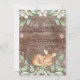 Joli cerf de bébé dormant encadré de verdure verdoyante et de somptueuses fleurs roses. Retournez notre invitation de bois pour voir un dos à fleurs coordonné pour une touche spéciale.