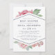 Les élégantes invitations à la douche pour bébé sont caractérisées par un mélange chic de fleurs vintages d'aquarelle et d'éléments géométriques modernes sur un arrière - plan blanc immaculé. Un spray de fleurs de pivoine rose rousse pointe du haut et du bas d'un élément central en forme de losange en bleu nuit, tenant vos détails de baby shower dans du lettrage propre et moderne. Cartes inversées à bleu nuit avec un motif en diamant pointu. Un beau design contemporain dans une palette de couleurs luxueuses de bleu, bleu marine et vert sauge.