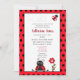 Jolie invitation de Baby shower de Ladybug noir rouge. Comprend une coccinelle volante avec des pistes cardiaques et une fleur avec des coccinelles escalade vers le haut de la tige. Maman sera ravie d'être avec cette invitation baby shower.