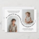 Une invitation de baptême conjoint moderne avec 2 de vos propres photos en forme d'arche. Le texte du titre est courbé autour des photos avec des étoiles. Vous pouvez changer la couleur de tout le texte et des étoiles dans ce design.