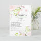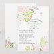 De délicates fleurs sauvages roses et vertes ornent les coins de l'invitation. Embellie d'une croix rose et blanche.