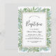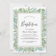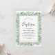 Cette invitation au baptême de verdure estivale est parfaite pour un élégant baptême de bébé du milieu de l'été. Le design botanique présente un agencement luxuriant d'eucalyptus aquarelés peints à la main, de verdure et de feuilles verts vibrants, évoquant une atmosphère fraîche et naturelle. Avec son esthétique sereine et sophistiquée, cette invitation donne le ton d'une célébration mémorable et significative. Entièrement personnalisable pour correspondre à votre style.