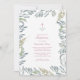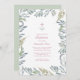 VG Invitations verdure Baptême invitation encadre vos détails d'évènement religieux et croix religieuse rose avec verdure à l'aquarelle peinte luxuriante sur un arrière - plan blanc. Une jolie couleur verte sage orne le dos de votre invitation. Un choix moderne mais organique de votre bébé Baptême, Christening, Première Communion, Dédication, bautizo bautismo, ou Confirmation. Conçu par Victoria. Pour en savoir plus, visitez www.zazzle.com/vginvites