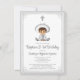 Invitez vos invités à une célébration de tradition et d'élégance avec notre invitation de baptême et d'anniversaire Charro. Cette charmante invitation présente un adorable bébé charro vêtu d'un costume traditionnel argenté, magnifiquement mis en valeur par une croix argentée ornée et une bordure argentée élégante, le tout sur un fond blanc immaculé. Parfaite pour les fêtes de baptême et d'anniversaire, cette création allie avec élégance l'héritage culturel et le style sophistiqué. Entièrement personnalisable pour s'adapter à la personnalité unique de votre événement, cette invitation de haute qualité garantit que votre journée spéciale soit marquée par la grâce et la joie. Rendez votre double célébration inoubliable avec cette invitation intemporelle et exquise.