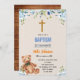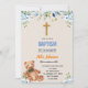 Invitation de baptême ours fleur bleue
