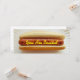 Une invitation maigre comportant une photo d'un hot-dog simple dans un petit pain se reposant d'un plat de livre blanc. Le texte jaune au-dessus du contreseing (la moutarde) vous lit "sont invités." Personnalisez le texte noir et rouge du bord opposé avec votre nom et détails de votre événement.