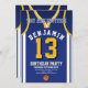 Célébrez votre journée spéciale avec cette Invitation anniversaire de Basketball Jersey, conçue pour les vrais fans de basket ! Doté d'un design jersey audacieux inspiré des couleurs emblématiques violet et or, cet invitation est parfait pour les enfants, les ados et les adultes qui aiment le jeu. Personnalisez-le facilement avec votre nom, âge, détails de la fête et même le numéro d'équipe en quelques clics seulement. Disponible en plusieurs tailles, imprimé sur papier de qualité supérieure avec une large gamme de finitions pour correspondre à votre style. Choisissez parmi différents types de papier, l'impression rapide et l'expédition rapide afin que vos invitations arrivent à temps. Que ce soit pour une fête sportive ou une fête de fans de Lakers, cet invitation est le moyen idéal pour exciter vos invités.