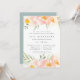 Une élégante invitation à la floraison aquarelle pour le bat mitzvah de votre fille encadre votre cérémonie religieuse et les détails de la fête avec une bordure de fleurs pastel pastel clair pêche et rose rousse, avec feuillage vert menthe.