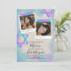 Invitation Bat mitzvah de style Scrapbook avec parties scintillant turquoise, aqua, rose et violet. De belles photos carrés avec la vedette de David artwork sur papier recouvert est un beau look vintage pour votre anniversaire. Les légendes photo peuvent être changées en n'importe quelle belle formulation que vous choisissez. Téléchargez facilement vos photos dans les cadres photo.
