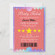 Une invitation pour une soirée est un moyen unique et créatif pour les invités invitations à un événement spécial, ressemblant à un billet d'entrée à un concert, un film ou d'autres événements passionnants. Ce type d'invitation fournit non seulement des détails essentiels sur l'événement, mais ajoute également un élément ludique et thématique qui peut exciter et engager des invités. Voici quelques caractéristiques et aspects clés d'une invitation de billet de fête