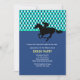 Une invitation sportive qui est parfaite pour une partie de Kentucky Derby ou n'importe quelle occasion cheval-emballer-connexe. La carte comporte un motif à motifs de losanges bleu, vert et blanc sur le dessus, un fond bleu solide et un jockey de silhouette sur un cheval dans le noir.