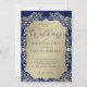 Ce faire-part de mariage associe un riche arrière - plan bleu à un damas doré complexe, qui donne un aspect de luxe intemporel. Le cadre doré orné entoure un panneau doré doux, mettant l'accent sur les noms et les détails de l'événement du couple dans un élégant équilibre de tradition et de raffinement. Le contraste entre le bleu profond et l'or lumineux crée un style royal et sophistiqué, parfait pour les mariages, les anniversaires et les célébrations formelles.