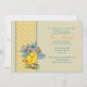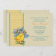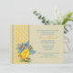 Une jolie image vintage d'un bébé poussin avec un bonnet de Pâques a inspiré cette délicieuse invitation. La carte est composée d'un arrière - plan de couleur sable, entrecoupé d'un ruban pointillé ensoleillé et paré de pétoncles bleus. C'est une formidable invitation pour toute célébration printanière.