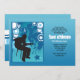 Une silhouette masculine jouant d'une guitare est une excellente invitation à une fête d'anniversaire, à un spectacle musical ou à un concert. La silhouette est projetée contre un arrière - plan abstrait de cercles bleus et blancs, d'étoiles et de éclaboussures de peinture.L'invitation est facile à customiser avec votre libellé, police, couleur de police et choix de six types de papier.