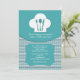 Une sarcelle d'hiver croquante et une invitation blanche comportant le casquette d'un chef avec des ustensiles. Montré comme invitation de brunch de mariage de poteau, il est également parfait pour un dîner de répétition ou un déjeuner des dames.